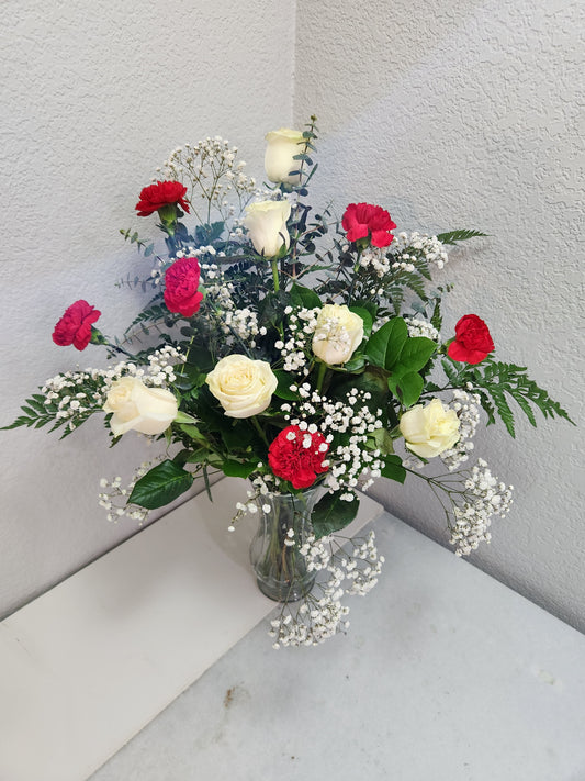 6 Premium Roses & 6 Carnations Arrangement – Elegant Fresh Flower Arrangement