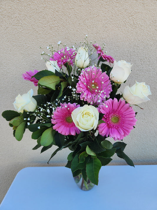 6 Roses & 6 Gerbera Daisies Bouquet – Bright Fresh Flower Arrangement